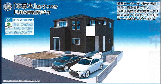 • 小田急小田原線「本厚木」駅まで バス 18分 バス停「毛利台団地」まで 徒歩 5分
