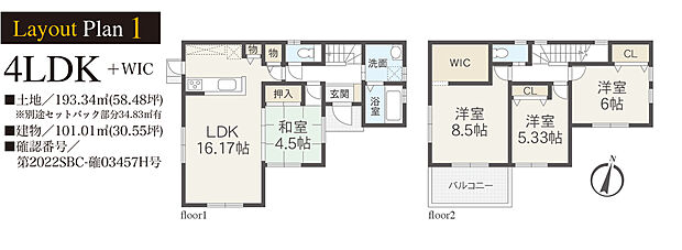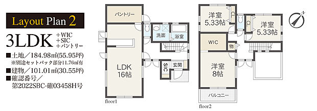 土地面積 184.98m2(55.95坪)・193.34m2(58.48坪)