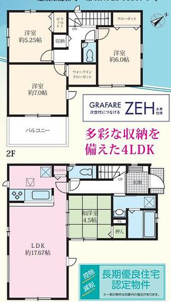 • 「建築条件付き土地」の「建物プラン例」は、土地購入者の設計プランの一例であり、プランの採用可否は任意です。