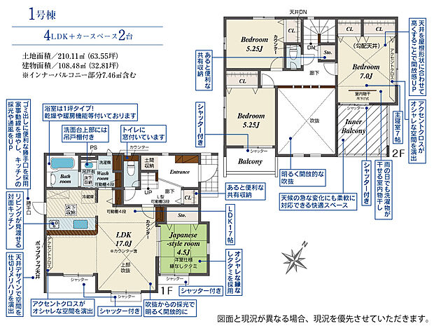 | 建物面積 | 108.48m2(約32.81坪) | ||