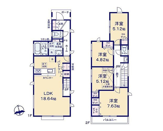 | 間取り | 4LDK 間取り内訳:リビングダイニングキッチン 18.6帖(1階) |