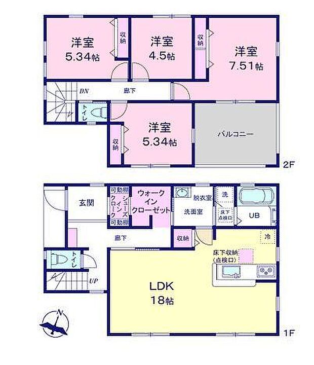 | 間取り | 4LDK 間取り内訳:リビングダイニングキッチン 18帖(1階) |