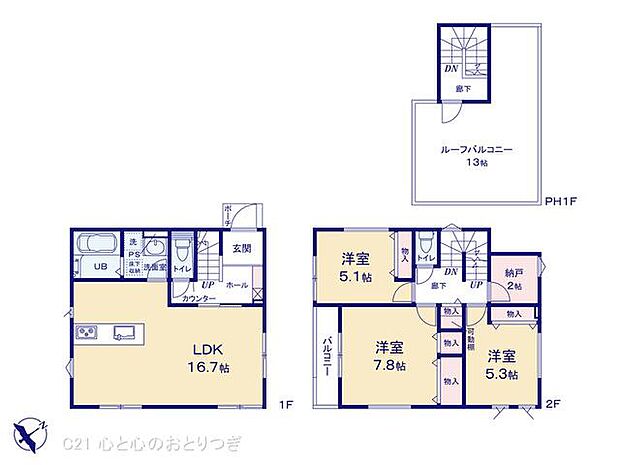 | 間取り | 3LDK 間取り内訳:リビングダイニングキッチン 17.7帖(1階) |