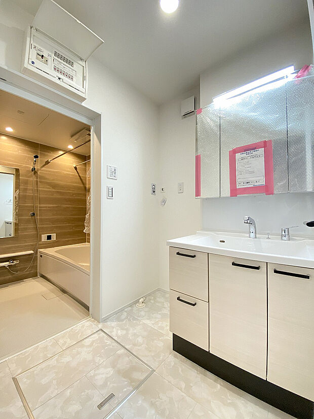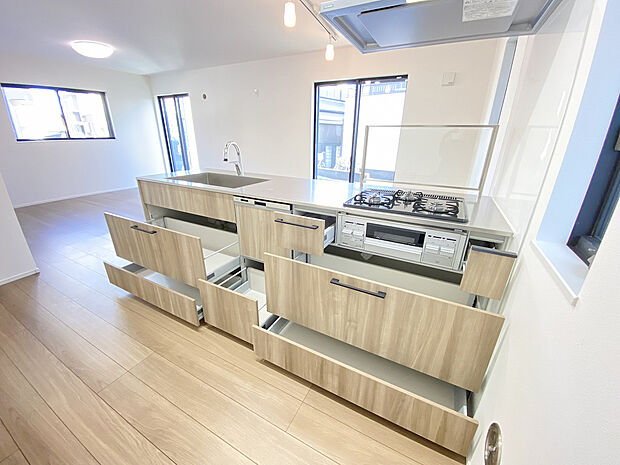 開放感のある角地区画。車2台駐車可能です。|家事効率の良い、水回りを集めた間取り。