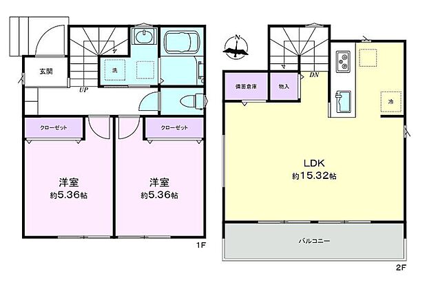 | 間取り | 2LDK 間取り内訳:リビングダイニングキッチン 15.3帖(2階) |