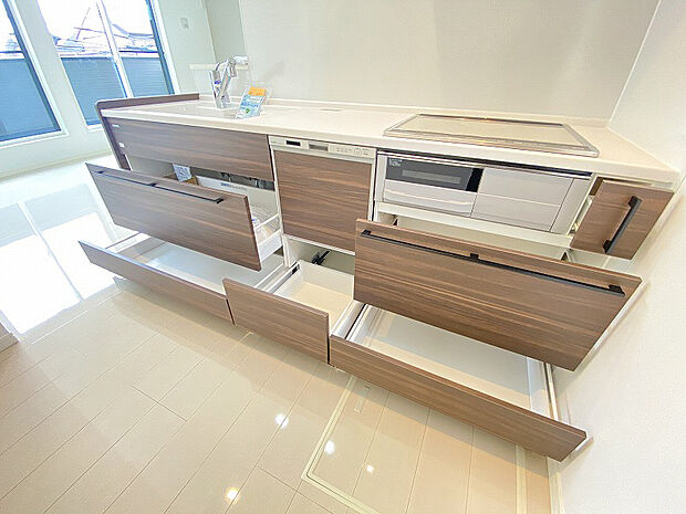 南西角地につき、開放感があります。全室南向きの陽当たり良好なおうち キッチンは独立性を持たせた作り。