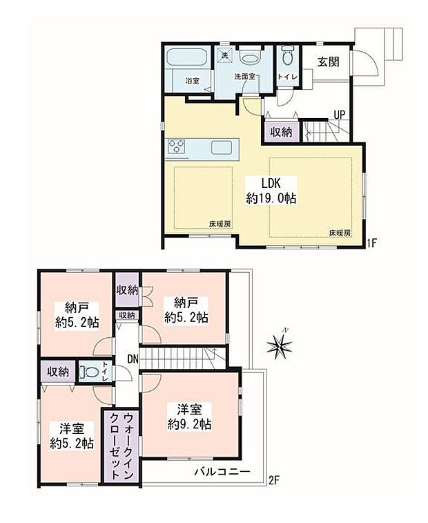 ウォークインクローゼットや床暖房などのある2SSLDK 前面道路は約6.5mあり開放感のある住宅地。