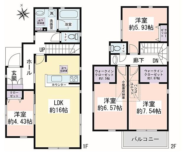 | 間取り | 4LDK 間取り内訳:リビングダイニングキッチン 16帖(1階) |