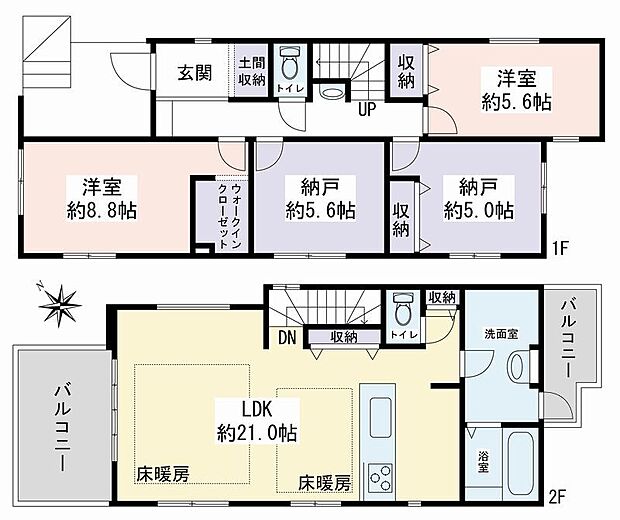 | 間取り | 2SLDK 間取り内訳:リビングダイニングキッチン 21帖(2階) |