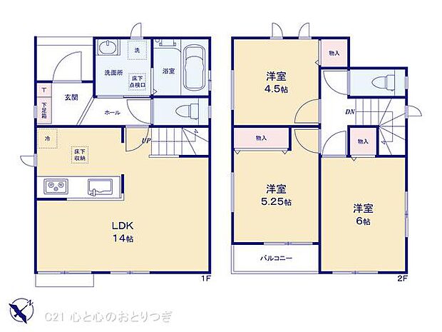 | 間取り | 3LDK 間取り内訳:リビングダイニングキッチン 14帖(1階) |