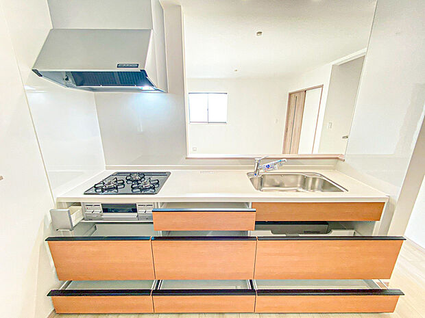 全室南向きにつき、陽当たり良好 キッチン周りに水回りを集約した、家事動線を考えたコンパクトハウス。