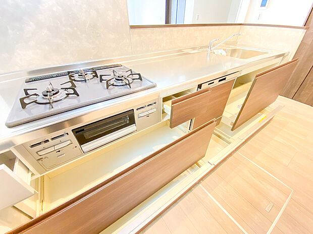 大規模開発分譲地の新築戸建 開発道路は幅員4.5mで住民以外の車の通り抜けがなく小さいお子様も安心。
