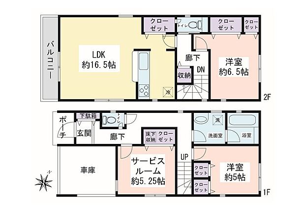 | 間取り | 2SLDK 間取り内訳:リビングダイニングキッチン 16.5帖(2階) |