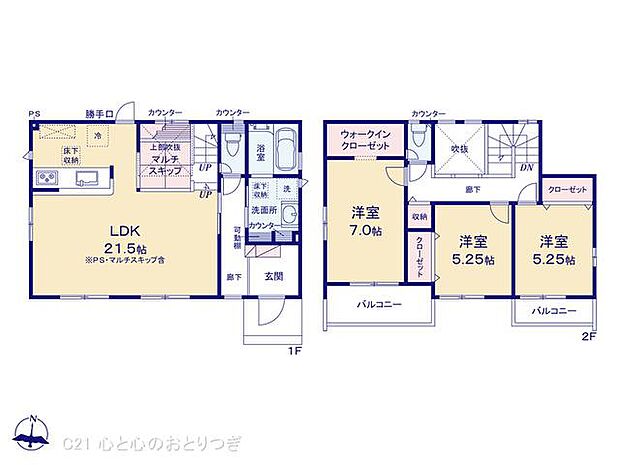 | 間取り | 3LDK 間取り内訳:リビングダイニングキッチン 21.5帖(1階) |