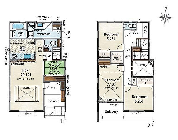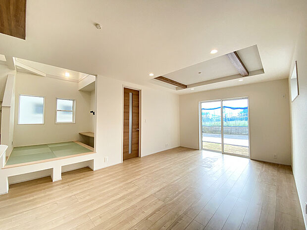 カースペース2台並列駐車可能 用途に合わせて様々に使えるマルチスキップをリビング横に配置しました。