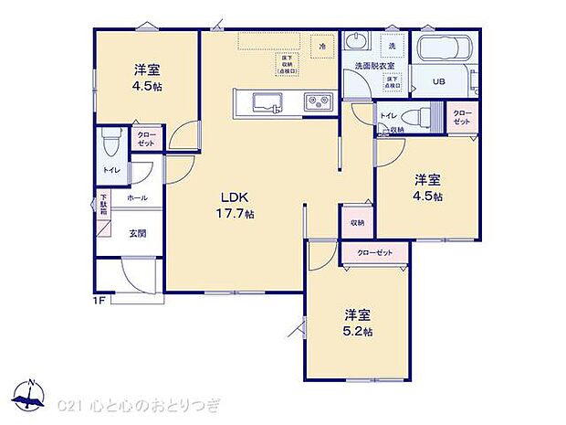| 間取り | 3LDK 間取り内訳:リビングダイニングキッチン 17.2帖(1階) |