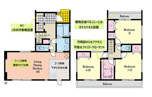| 間取り | 3LDK 間取り内訳:リビングダイニングキッチン 19帖(1階) |