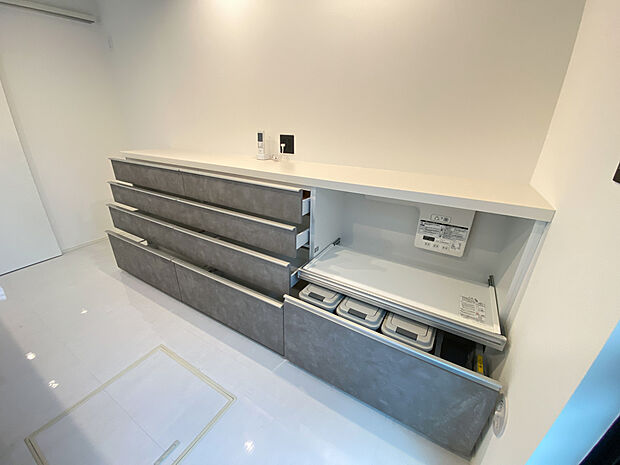 共用スペースからアクセスでき、家族全員の衣類や荷物をまとめて収納できるファミリークローゼット付き