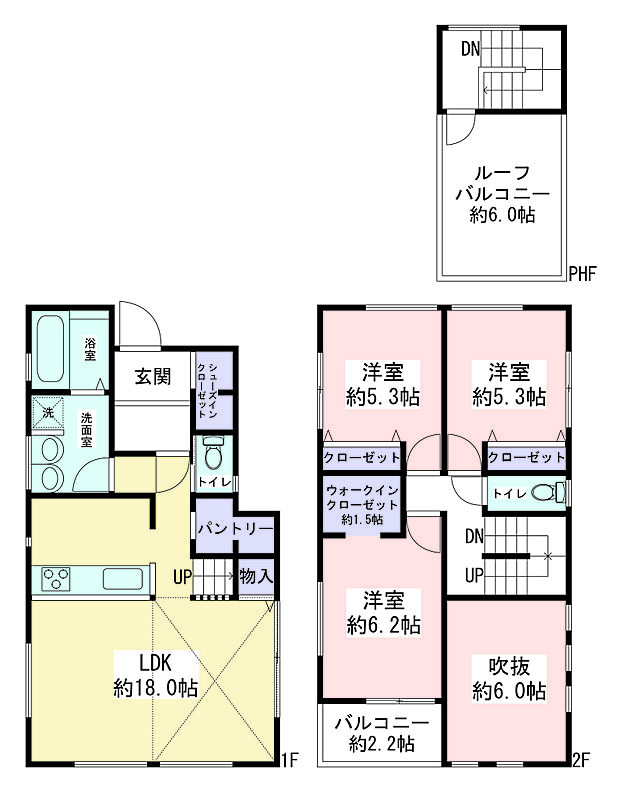 | 間取り | 3LDK 間取り内訳:リビングダイニングキッチン 18帖(1階) |