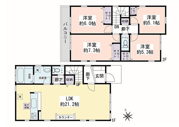 間取り内訳:リビングダイニングキッチン 21.2帖(1階)