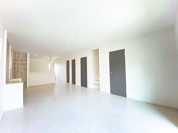 キッチン周りに水回りを集約した家事動線の良い間取りです 21帖超の広々開放感あるLDK