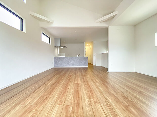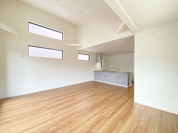 約21.5帖のひろびろLDKは、吹抜けとリビング階段が開放感をさらに演出します