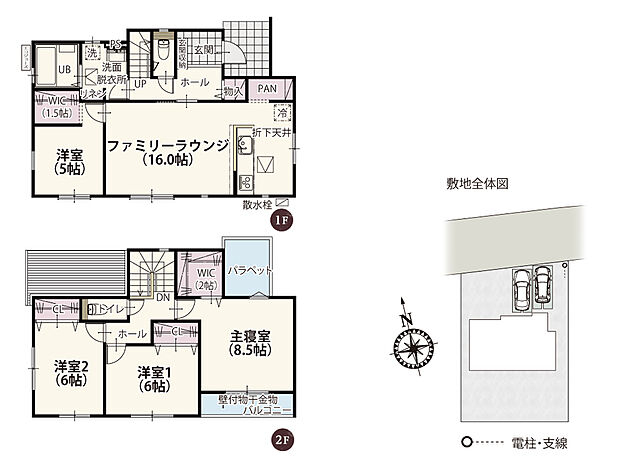 • 【区画図】前面道路は6.0mのため、お車の出し入れもラクラクです。周辺も分譲地のため、ご近所の方との交流もしやすく、子育て世帯も安心です。