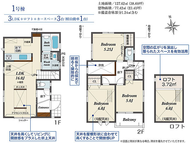 - 「建築条件付き土地」の「建物プラン例」は、土地購入者の設計プランの一例であり、プランの採用可否は任意です。