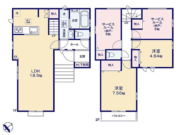 間取り 2LDK+2S、3LDK 建物階 木造サイディング貼アスファルトシングル葺2階建