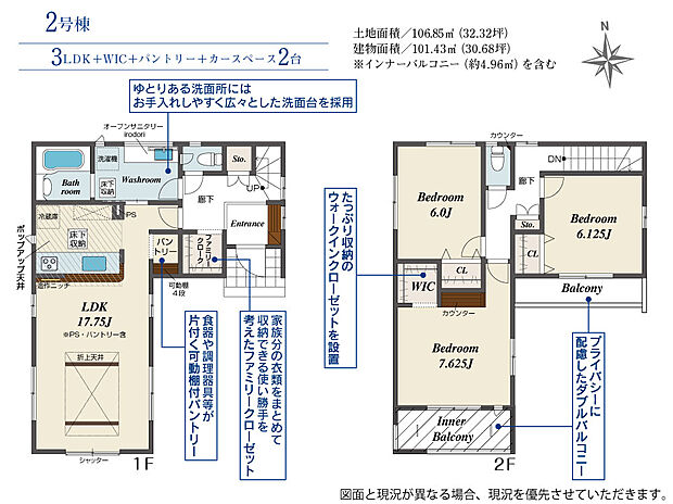 106.85m2(約32.32坪)~107.09m2(約32.39坪) |
