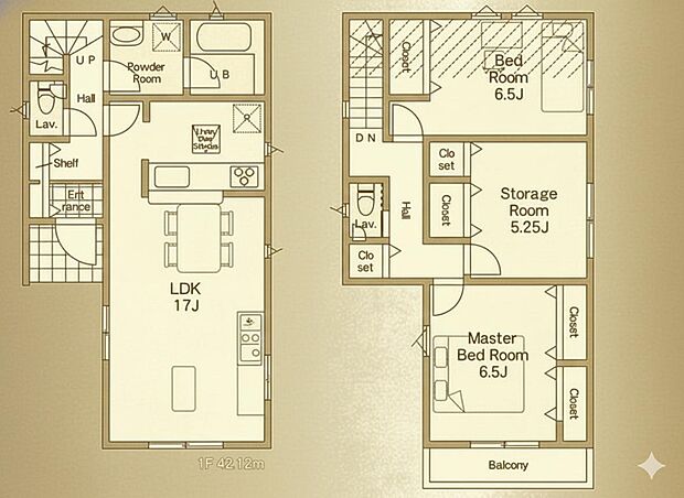 | 間取り | 2SLDK 間取り内訳:リビングダイニングキッチン 17帖(1階)・洋室 6.5帖(2階)・洋室 5.2帖(2階)・洋室 6.5帖(2階) |