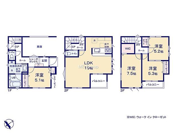 | 間取り | 4LDK 間取り内訳:洋室 5.3帖・洋室 5.2帖・洋室 5.1帖・リビングダイニングキッチン 19帖・洋室 7.5帖 |