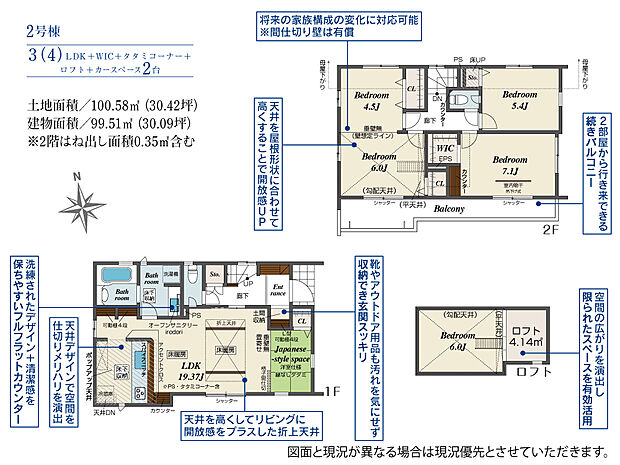 間取り 3LDK~4LDK 建物階 木造2階建(在来工法)