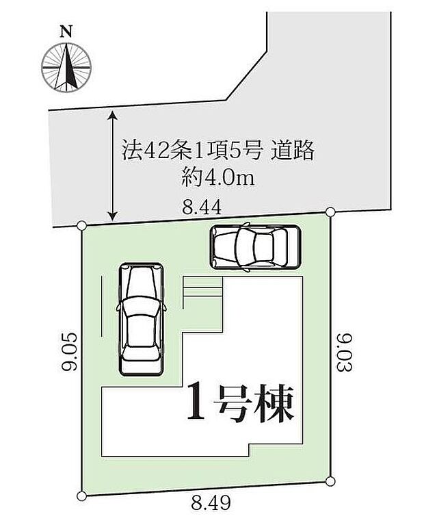 道路幅:4m、アスファルト舗装、北側4m私道