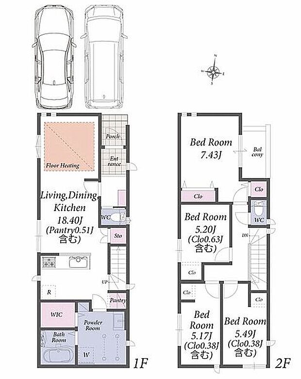 並列2台駐車可能なカースペース付き。2階建て新築分譲住宅のご紹介です。