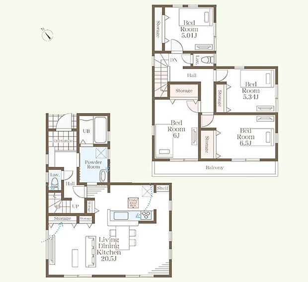 | 間取り | 4LDK 間取り内訳:リビングダイニングキッチン 20.5帖・洋室 6.5帖・洋室 6帖・洋室 5.3帖・洋室 5帖 |