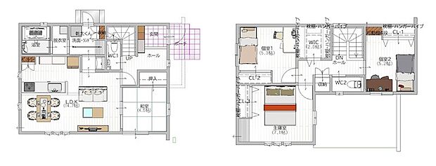 水回りに特化した家事楽同線!!1F和室で家族とゆとりの時間を、2Fは各部屋のクローゼットや独立したフ