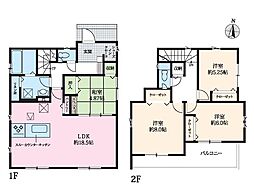 | 間取り | 4LDK 間取り内訳:リビングダイニングキッチン 21帖(1階)・洋室 5.1帖(2階)・洋室 5.3帖(2階)・洋室 5.3帖(2階)・洋室 7.7帖(2階) |