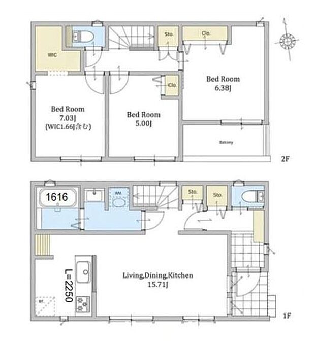 間取り内訳:リビングダイニングキッチン 15.7帖(1階)・洋室 7帖(2階)・洋室 5帖(2階)・洋室 6.3帖(2階)