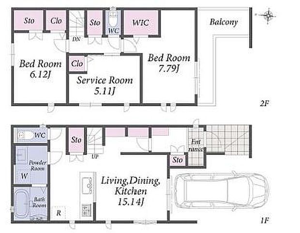 | 間取り | 2SLDK 間取り内訳:リビングダイニングキッチン 15.1帖(1階)・洋室 6.1帖(2階)・収納 5.1帖(2階)・洋室 7.7帖(2階) |