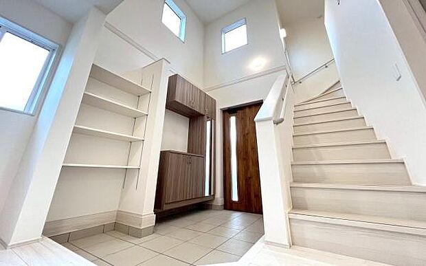 ●玄関上部は吹き抜けで開放感有り●南側道路に面し陽当り良好●洗濯物が多くても安心の2面バルコニー●
