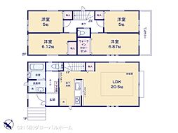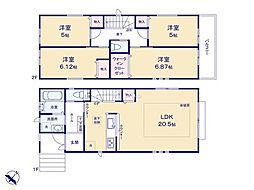 | 間取り | 4LDK 間取り内訳:リビングダイニングキッチン 20.2帖(1階)・洋室 4.4帖(2階)・洋室 4.4帖(2階)・洋室 6帖(2階)・洋室 7.3帖(2階) |