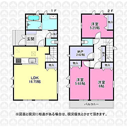 | 間取り | 4LDK 間取り内訳:リビングダイニングキッチン 17.7帖(1階)・洋室 5.2帖(2階)・洋室 4.5帖(2階)x2・洋室 6帖(2階) |