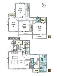 | 間取り | 4LDK 間取り内訳:リビングダイニングキッチン 20帖(1階)・洋室 7.2帖(2階)・洋室 6帖(2階)・洋室 6帖(2階)・洋室 5.2帖(2階) |