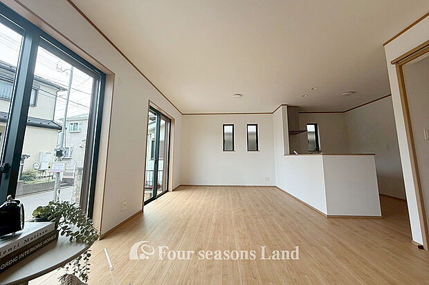 LDK18帖以上の南向きの陽当りのいいLDKとなっております。 東南角地となっていつので、開放感もあります。 各居室が2面採光となっておりますので、明るい居室になります。 前面道路も交通量が少なく小さ