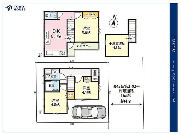 | 私道負担 | 37.85m2私道負担割合:2290分の730 | 用途地域 | 第一種低層住居専用地域 |