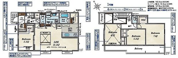 | 間取り | 4LDK 間取り内訳:リビングダイニングキッチン 21.2帖・洋室 7帖・洋室 6.2帖・洋室 5.2帖・洋室 5.2帖 |
