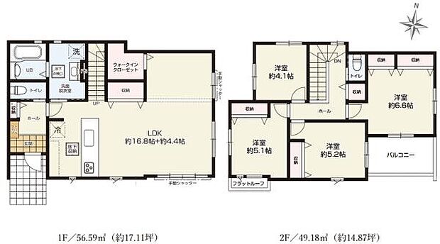 LDK広々21.2帖・駐車場並列3台のゆとりの4LDK。リビングに収納・WIC付き。