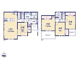 | 間取り | 4LDK 間取り内訳:リビングダイニングキッチン 17.3帖(1階)・洋室 6.6帖(2階)・洋室 5.7帖(2階)・洋室 4.5帖(2階)・洋室 4.2帖(2階) |