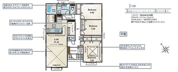 | 間取り | 3LDK 間取り内訳:リビングダイニングキッチン 21.5帖・洋室 7帖・洋室 6帖・洋室 5帖 |
